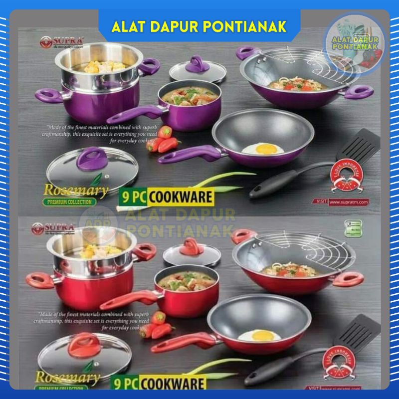 Name: Panci Set Supra Rosemary 9 Pcs Cookware Set Ungu Merah - Alat Dapur Pontianak