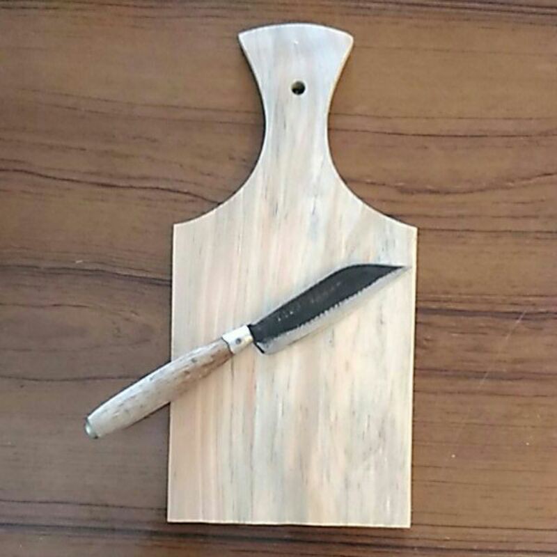 Pisau kecil tajam. Bahan baja pilihan. Gagang dr kayu dikunci dg plat besi sehingga tdk mudah lepas & k