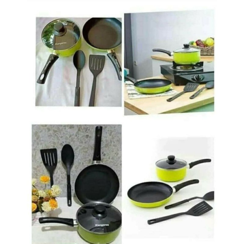 Name: Promo Panci Set Murah - Teflon Anti Lengket - Cookware Kangaroo Emerald 1 Set Isi 5 Pcs