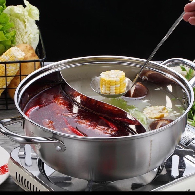 Paling Murah Perlengkapan di Kota Batu Panci Shabu 28cm/30cm Tutup Kaca - Panci Hotpot Steamboat Sabu 2 Sekat dari Tokosumberjaya_ Kab. Banjar