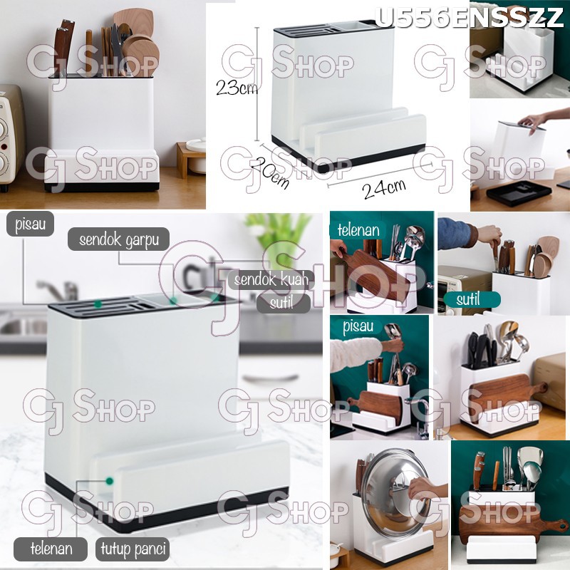 Tempat Talenan Pisau Dapur U556Bahan ABS, Uk 23x24x20cm,Rak serbaguna untuk menyimpan peralatan dapur sepertipisau, sendok kuah,sendok garpu , telenan dan tutup pancidapur rapi membuat semangat memasak bertambahBagian bawah bisa dibuka untuk membuang sisa air yang tersisa dari bekas cucian peralatan d