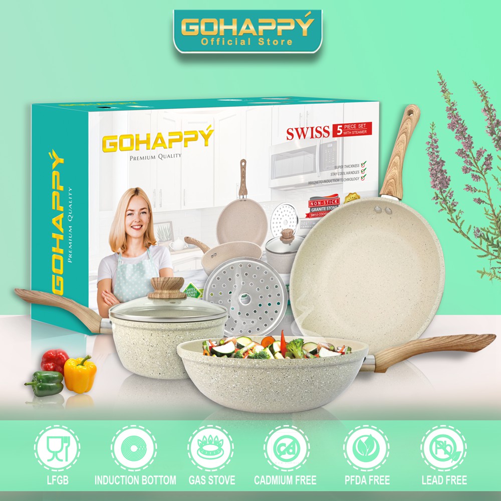 Name: Gohappy Panci Swiss Granite Stone Isi 5 Piece | Premium Cookware Set | Ghs05