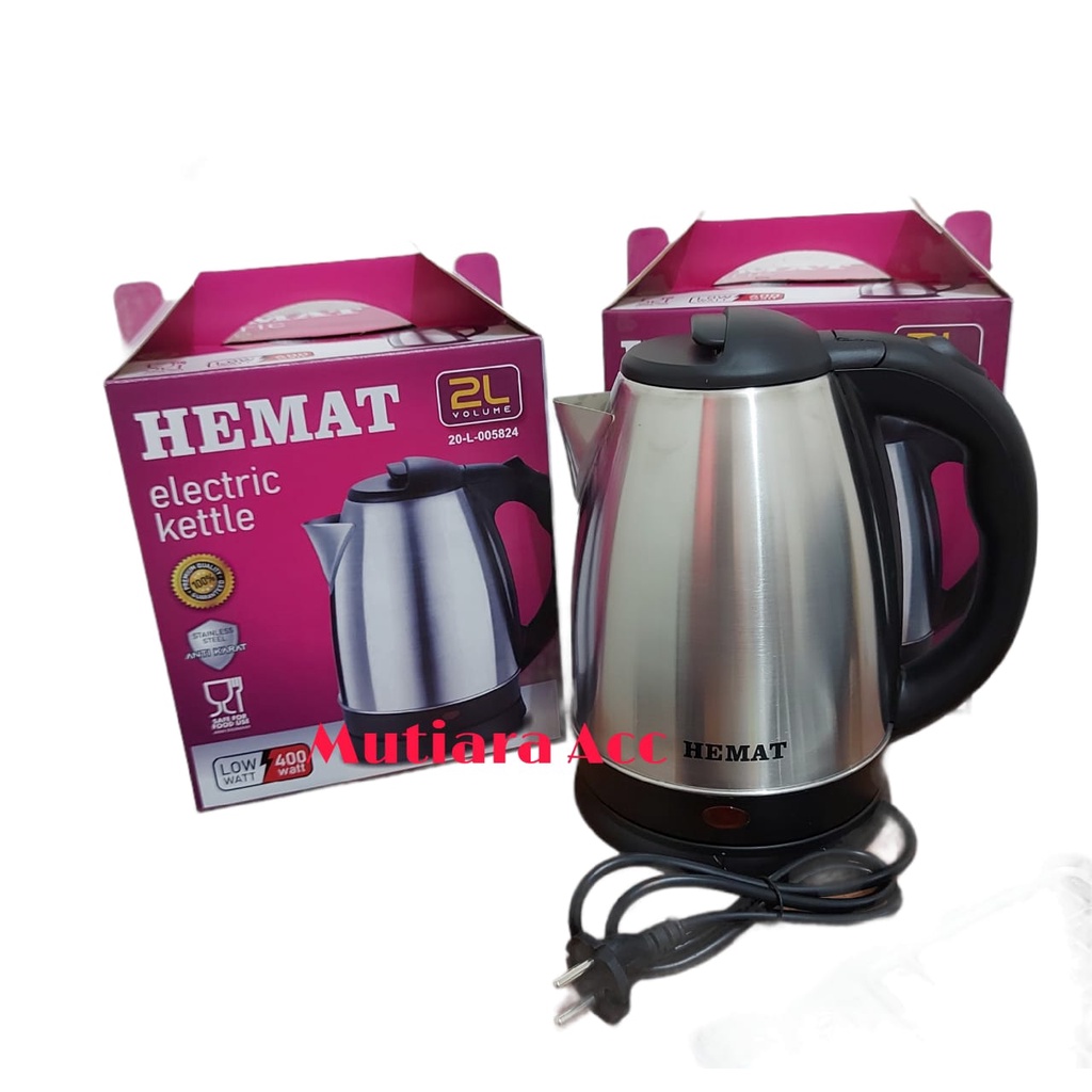 TEKO LISTRIK HEMAT 2LITER KETTLE KETEL STAINLESS 400W LOW WATT MURAHBody dan penutup dalam menggunkan stainless steel kelas 304 yang berkualitas tinggi.Memiliki proteksi overheat dengan lampu indikator.Fitur anti kekeringan dan perlindungtan kelebihan panas.Plat pemanas berbahan aluminium dan 340 SS. dapat diputar 360 derajat diatas dudukannya. Fitur power OFF secara otomatis (ketel mati secara otomatis ketika air mendidih).Pegangan plastik PPSpesifikasi:- Brand HEMAT by VISICOM- Kapasitas 2 Liter- Daya 400 Watt- Tegangan 220V- Frekuensi 50 Hz- Anti Karat, aman, praktis dan nyaman digunakan- Tahan Lama"DROPSHIPPER AND RESELLER ARE WELCOME"Foto yang di upload sesuai dengan barang AsliPENTING:* UNTUK ELEKTRONIK SEPERTI SPEAKER, KIPAS, TEKO DIWAJIBKAN MEMBELI EXTRABUBBLE WRAP, AGAR MENGURANGI KERUSAKAN DI EXPEDISI* SEBELUM KIRIM KAMI PASTI CEK FISIK TERLEBIH DAHULU UNTUK MENGHINDARI DLL* TIDAK TERIMA RETUR/REFUND/COMPLAIN JIKA TIDAK DISERTAKAN VIDEO UNBOXING* MEMBELI BERARTI PAHAM, SETUJU DENGAN KESEPAKATAN YANG DI BUAT OLEHPENJUALPerlu di ketahui :Pengiriman pada hari Senin - Sabtu, pembelian setelah jam 16.00 akan dikirim keesokan harinya. Jika ada tanggal merah maka akan di proses hari beriku