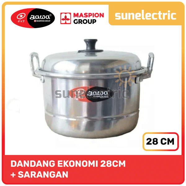 Dandang Ekonomi adalah Kukusan merek Jawa dari Maspion Logam Jawa. Alat masak multi fungsi yang bisa digunakan untuk berbagai keperluan di dapur seperti mengukus, memasak sayur, memasak nasi, dan membuat kue.Terbuat dari aluminium MASPION. Aluminium adalah konduktor panas yang baik sehingga memasak menggunakan alat masak berbahan aluminium akan lebih cepat matang sehingga menghemat energi dan waktu.Saringan aluminium dirancang agar lebih mudah diangkat ketika makanan sudah matang.Dilengkapi dengan tutup aluminium, membuat masakan matang lebih cepat dan merata sehingga hemat waktu dan energi.Spesifikasi:- Bahan Aluminium- Dengan tutup dan sarangan- Diameter 28 cm- Aman ketika kontak dengan ma