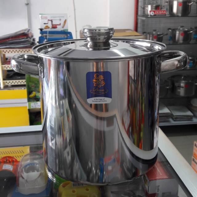 Bima Prima Stock Pot D22cmxH20.5cmKapasitas 8ltKualitas BagusBisa digunakan di kompor api dan kompor induksiBerguna untuk penggunaan masak sehari hari#panci #pancimurah #pancistainless #pancibima #pancibimaprima #stockpot #stockpot