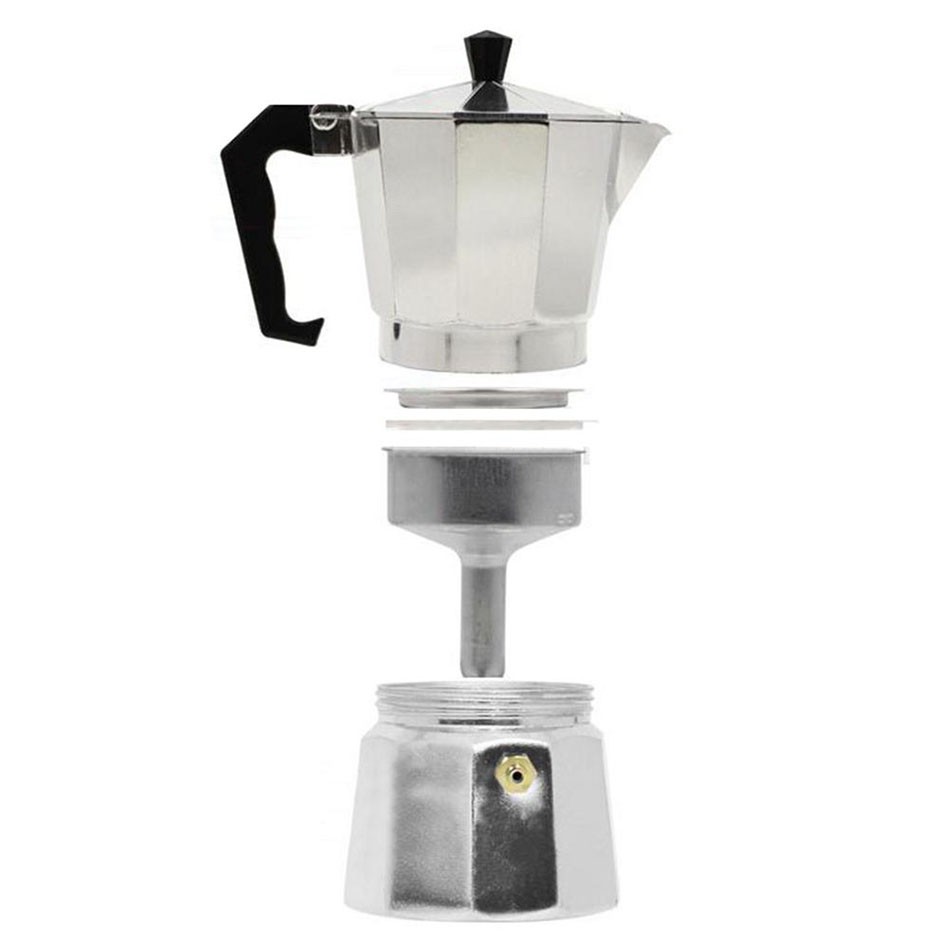 Pemakaian :1. Teko ini terdiri dari 3 bagian, dari bawah berisi air, tengah diisi bubuk kopi, dan paling atas kopi yang siap dihidangkan2. Buka teko dengan cara diputar3. Isi kontainer bawah dengan air 4. Bagian tengah isi dengan serbuk kopi5. Kemudian tutup rapat dan panaskan6. Tunggu hingga teko mengeluarkan bunyi, Kopi espresso siap disajikanMaterial Stainless SteelUkuran