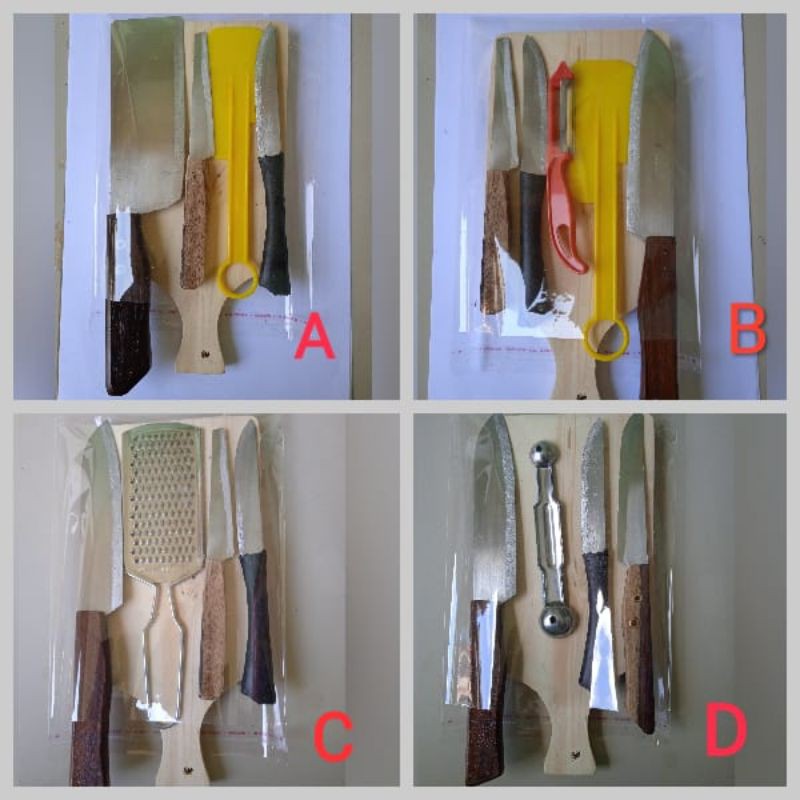 Paket Pisau Dapur set & Talenan serta Perlengkapan Masak LengkapAlangkah senangnya kita dapat menyediakan paket Pisau dapur & Talenan serta peralatan masak yang lengkap murah dan berqualiats.Tersedia 8 varian paket yang bisa dipilih. silahkan tulis paket yg diinginkan pada catatan pembelian. 1 paket harga Rp. 10.00