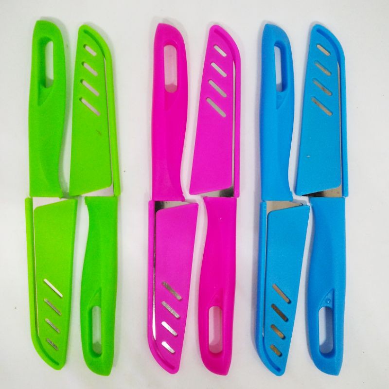 MINIMAL ORDER 3 PCSPisau Potong Buah / Sayur Perlengkapan Rumah- Warna cantik- Tajam- Bahan Stainless Steel Berkualitas- Dilengkapi Penutup Pisau- Variasi Warna : Hijau, Pink dan Biru- Foto produk ini foto asli- NO RETUR- Membeli = Setuju. - Harga di atas per PiecesNote :- Dikirim randomReady stock, silahkan di beliHappy shopi