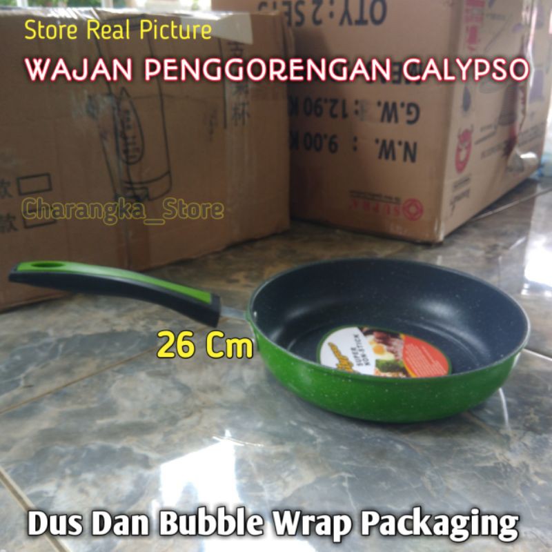 Wajan penggorengan calypso warna hijau tersedia : 20 cm, 24 cm, dan 26 cmWajan penggorengan terbuat dari almunium barang dijual