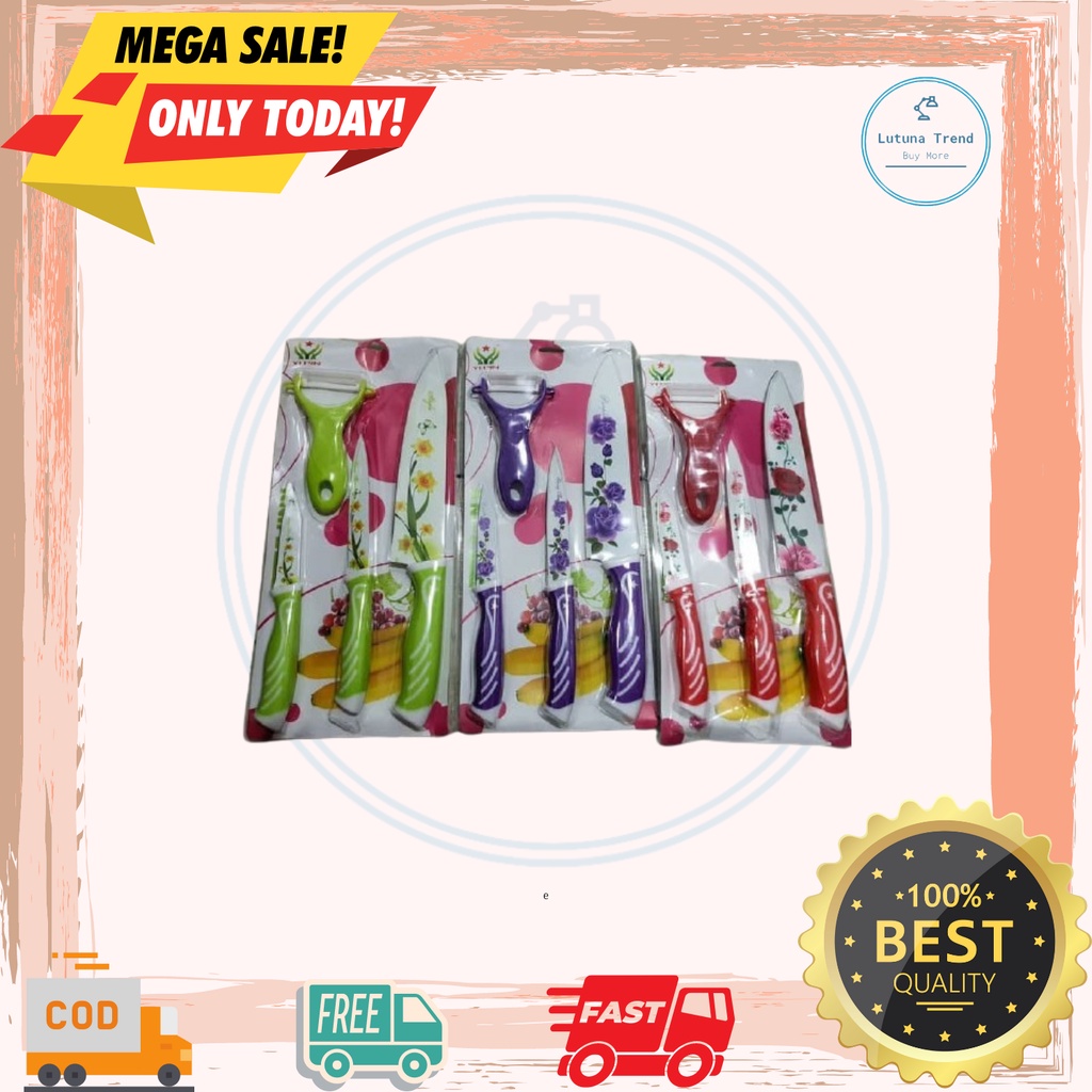 Name: Pisau Satu Set Keramik Motif Bunga 4 In 1 Pisau Dapur Buah Pemotong Daging Serbaguna