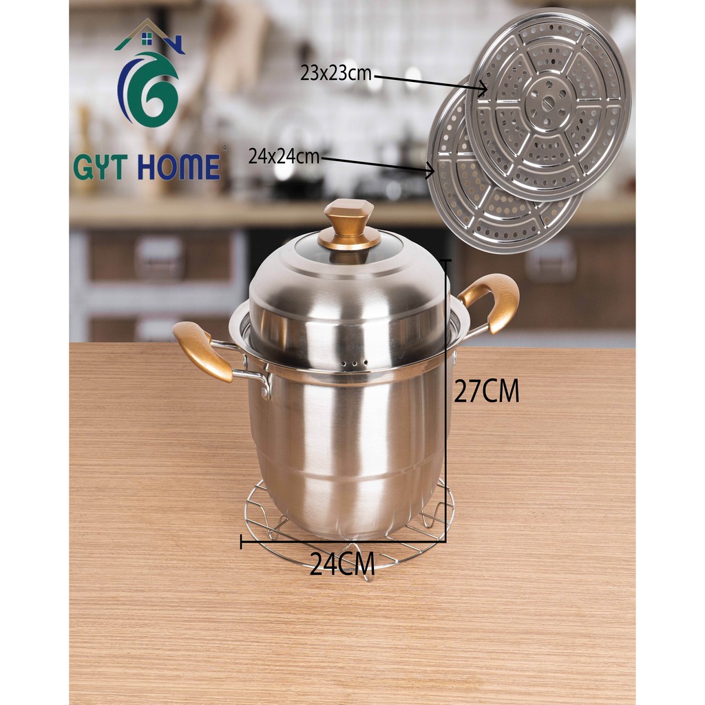 GYT Home Panci Kukusan-Stainless Steel 24CMButuh Panci untuk memasak makanan bersama keluarga besar dengan harga yang terjangkau ? Jangan khawatir! GYT Home menghadirkan Panci untuk memasak dalam skala besar. Cocok digunakan untuk Anda yang ingin memasak banyak baik untuk kumpul-kumpul keluarga ataupun teman-teman. Panci ini didesain khusus dengan panas yang merata sehingga masakan matang dengan merata.Cocok untuk semua jenis kompor, kompor induksi, kompor gas, kompor listrik, kompor keramik listrik, dll. SPESIFIKASI :Fungsi: Pengukus Sayuran, Kue, Nasi, dllBahan : Bodi Stainless Steel, Tutup KacaDIMENSI PRODUK (+/-)- Diameter Panci : 24 cm- Tinggi Panci : 19 cm- Tinggi Kukusan Bawah : 10cm- Tinggi Kukusan Atas : 6 cmukuran kemasan :35.5 cm x 20.5cm x28 cmberat produk : 2275 gramNote : Untuk hari Senin-Sabtu proses pesanan dilakukan sampai jam 15.00WIB , Hari minggu jam 14.00WIB . Orderan yang melebihi jam yang telah dintetukan akan dikirim ke-esokan hariny