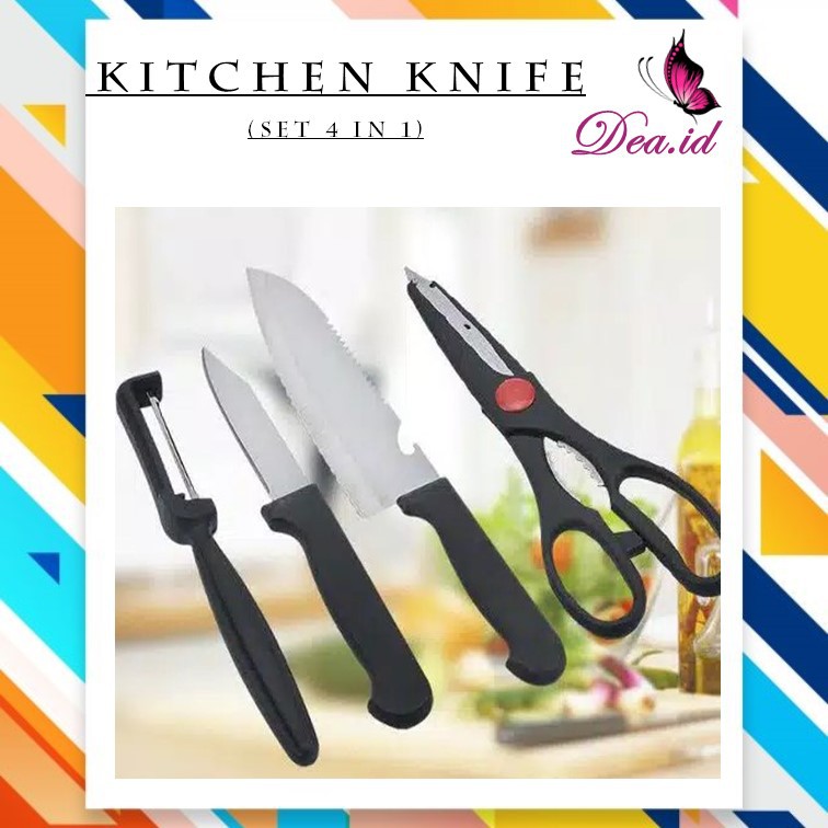 Name: [deastore] Set Gunting & Pisau Dapur 4 In 1 - Kitchen Knife Set 4 In 1 - Peeler Pengupas Buah