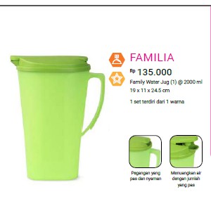 Terdiri dari :Family Water Jug (1) @ 2000 ml19 x 11 x 24.5 cm1 set terdiri dari 1 warnaHarga Katalog 15