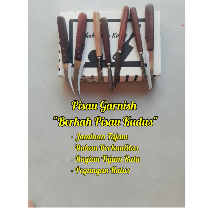 Pisau Garnish "Berkah Pisau Kudus"dibuat dari bahan pilihan, dan dibuat oleh pengrajim lokal terbaik.1 set = 7 bentuk.- bahan bilah menggunakan stainless steel- gagang sangat halus - tidak mudah patah- Di beri kardus sehingga pengirman Aman *WE GIVE YOU QUALITY*barang tidak sesuai, uang kembali 100%.barang tidak perlu dikembalikan.jangan lupa membuat video unboxinghappy sho