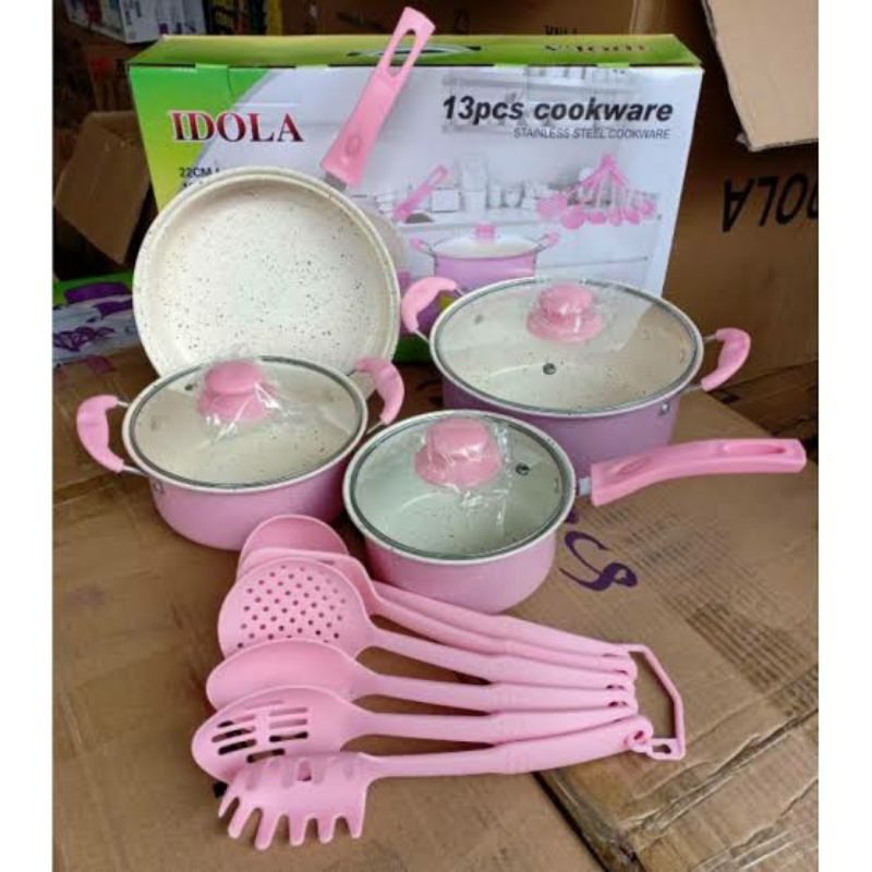 Distributor Perlengkapan di Kabupaten Grobogan 2.5kg# Panci Set Isi 13 Enamel Cookware / Set Panci Wajan Teflon Spatula /set Alat Masak Kitchen Set dari Tidak Ada Merek Kab. Pati
