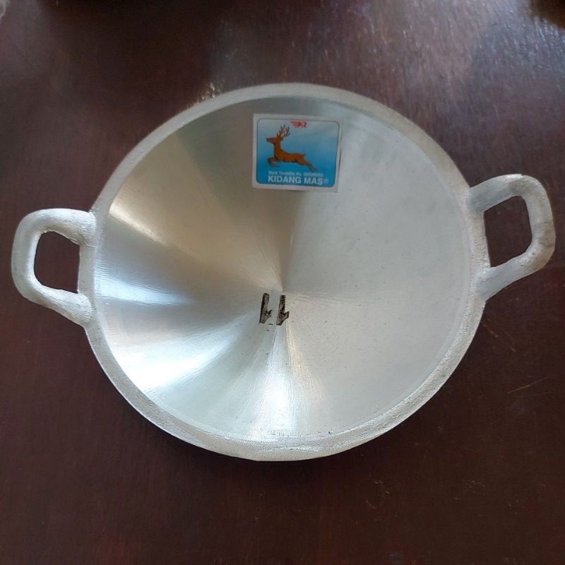 Bahan AluminiumDiameter 11 inch (27,5 cm)Tinggi 4 cmBarang sudah diperiksa dalam.keadaan bagus sebelum dikirim.Mohon tambahkan bubble wrap untuk keamanan dalam.pengiri