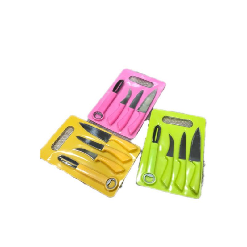 Bahan • talenan ( tatakan pemotong sayur ) 19lebar + 29panjang• pisau 3 jenis• di jamin tajam • bukaan kaleng + pembersih sisikikan + filler / pisau kupasMade in cina Import Perfect for preparing food Colorful surface with non stick coati